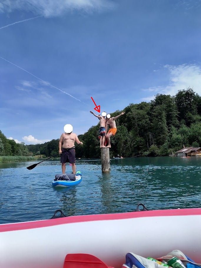 Bir Ihfahrt i Wohlesee hetsech usegsteut, dass weme d Luftmatraze as SUP ahseilet, zwar funktioniert, ds Navigiere aber eher vor Matraze us chunnt weder vom SUP, wo ja eigentlech ds Padel het. Im augemeine isch die Fahrt fridlech verloffe u me het d Flinte nid is Chorn müesse wärfe (ugs. Ds Paddel is Schiuf wärfe). Dr Versuech ds Öpfubütschgi is Gebüsch z wärfe isch aber gschiteret und das blöde Bütschgi hetnis wider ihghout. So hets nomau e zwöite Versuech brucht.